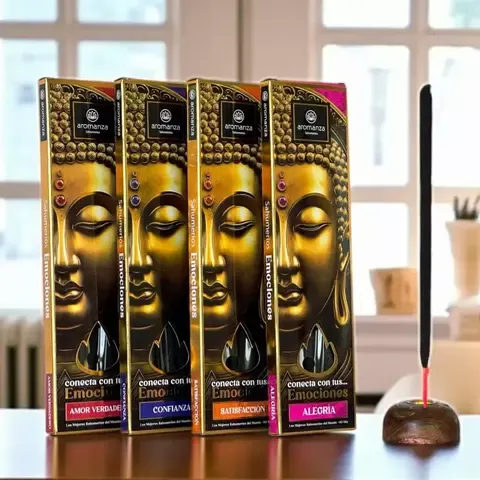Los Sahumerios Emociones son una colección de 10 aromas únicos diseñados para ayudar a conectar con sentimientos profundos, como Esperanza, Plenitud, Satisfacción, Confianza, Riqueza, Curiosidad, Gratitud, Alegría, Calma y Amor Verdadero. Cada sahumerio está elaborado con esencias naturales y está pensado para transformar el espacio, siendo ideal para meditación, rituales o la renovación de energías. Esta experiencia sensorial busca despertar emociones y elevar el bienestar personal al influir en el estado anímico a través de sus fragancias.
